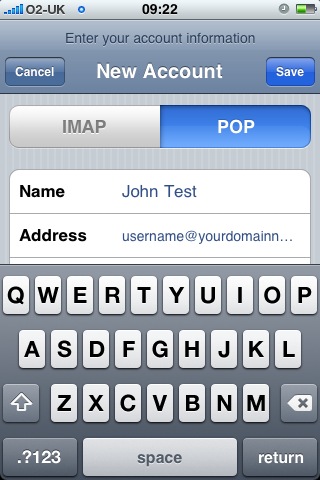 Address – the e-mail address that you are going to be using (e.g. info@yourdomainname.co.uk)